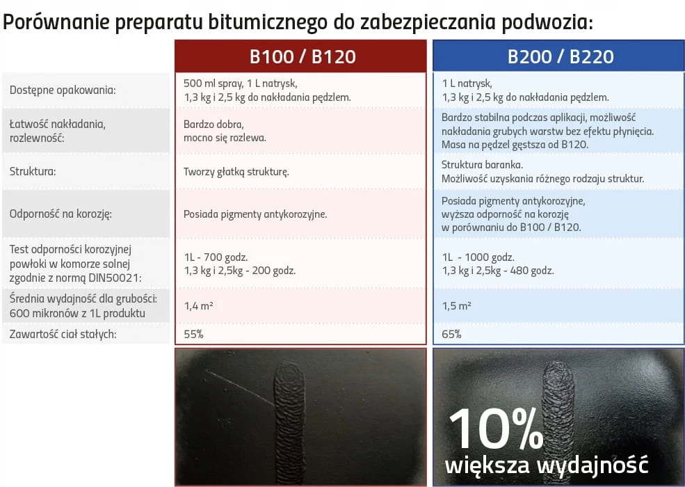 Tworzy trwałą ochronę antykorozyjną podwozi pojazdów osobowych, ciężarowych, maszyn oraz innych urządzeń, których podwozie narażone jest na działanie czynników atmosferycznych.