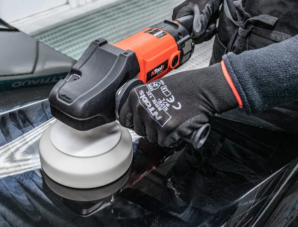 NTools RP II 180E to druga generacja polerki elektrycznej, rotacyjnej z mocowaniem gąbki polerskiej lub tarczy roboczej na gwint M14.