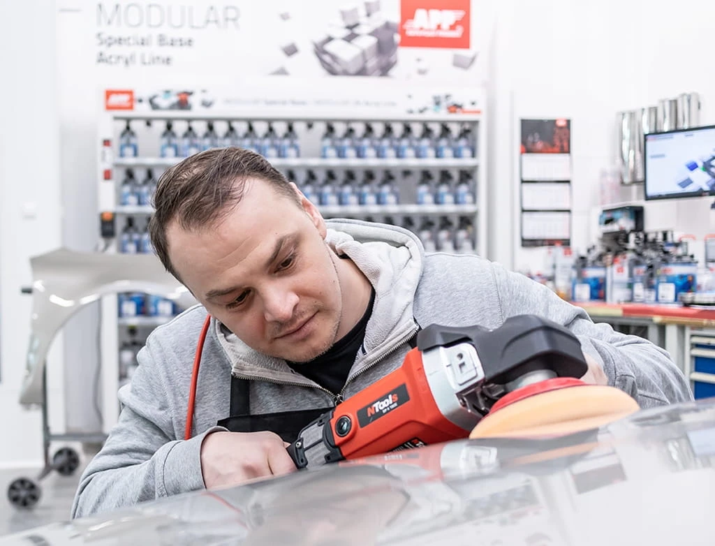 Ruch obrotowy sprawia, że cząsteczki ścierne pasty rozprowadzane są równomiernie. Dzięki temu polerka może być stosowana zarówno pastami mocno ściernymi, jak i delikatnymi rodzajami.