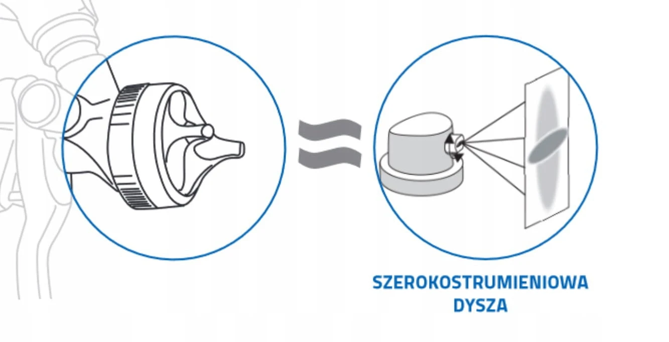 - szerokostrumieniowa dysza, której konstrukcja pozwala uzyskać strumień zbliżony do strumienia klasycznego pistoletu lakierniczego