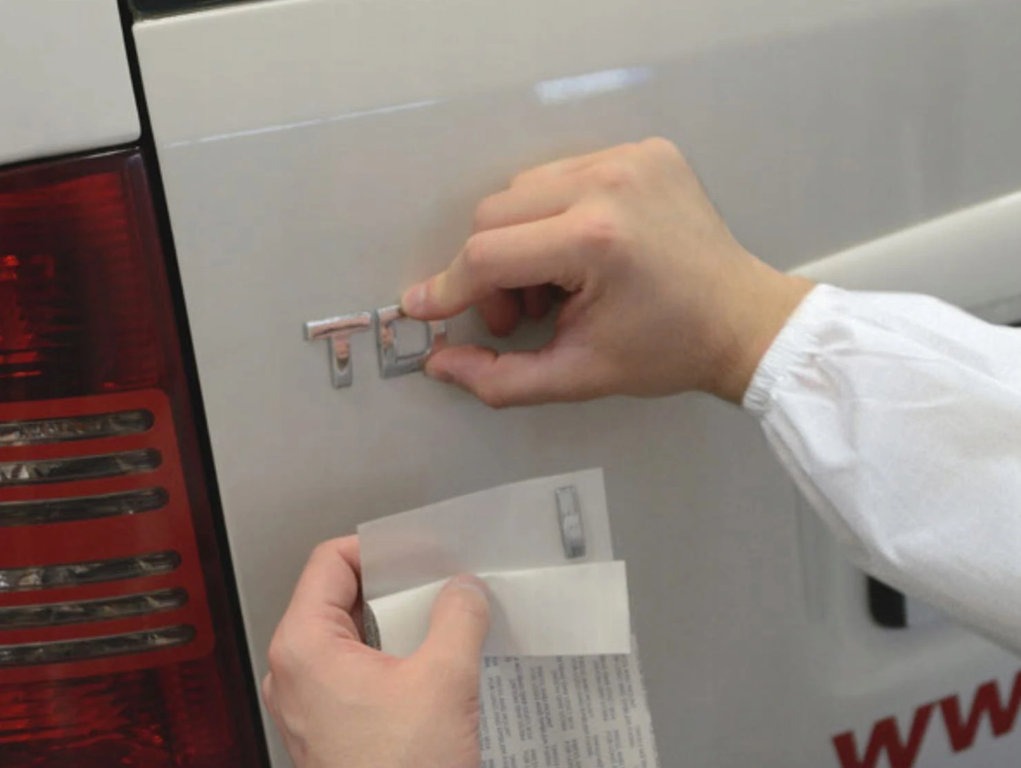 - Nałożyć emblemat na nadwozie samochodu.