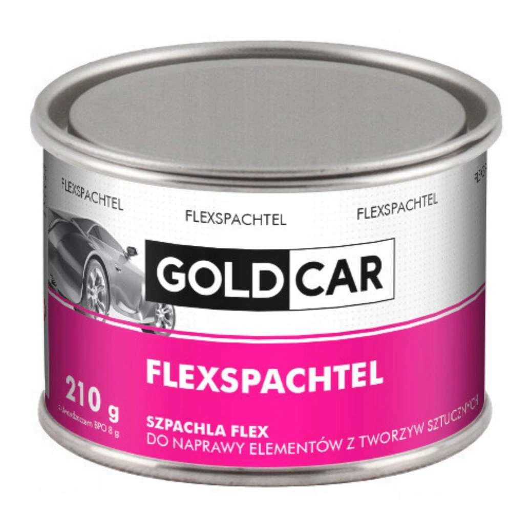- Szpachla FLEX GOLDCAR Zalecana do wypełniania nierówności i zarysowań na zderzakach w samochodach osobowych, ciężarowych itp., oraz po odpowiednim przygotowaniu powierzchni, także do innych elementów z tworzyw sztucznych. Wykazuje bardzo dobrą adhezję również do powierzchni metalowych (stal, stal ocynkowana, aluminium) i laminatów poliestrowych.