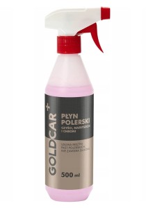 Płyn polerski Goldcar+ zmywa resztki past polerskich nadając głęboki blask polerowanej powierzchni.