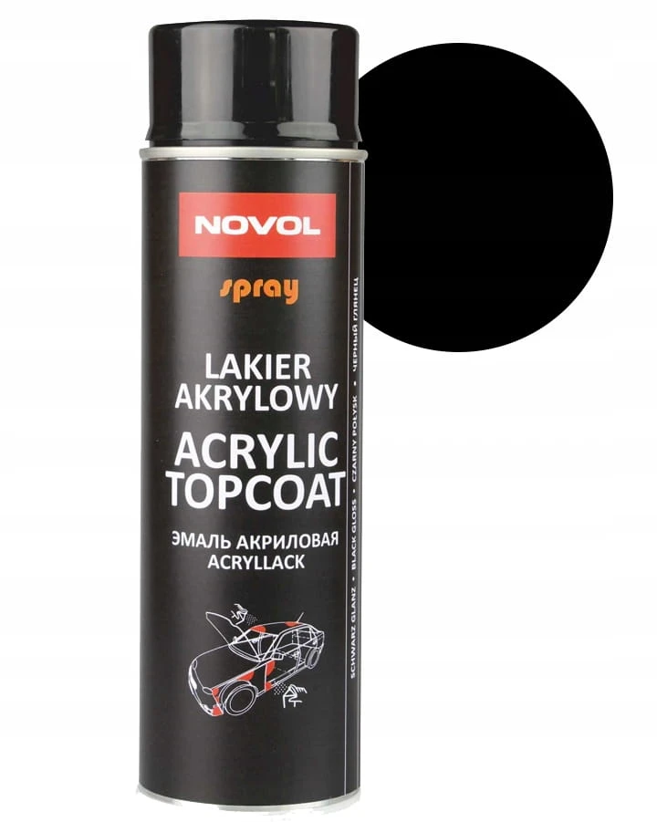 NOVOL lakier akrylowy spray CZARNY POŁYSK 500 ml