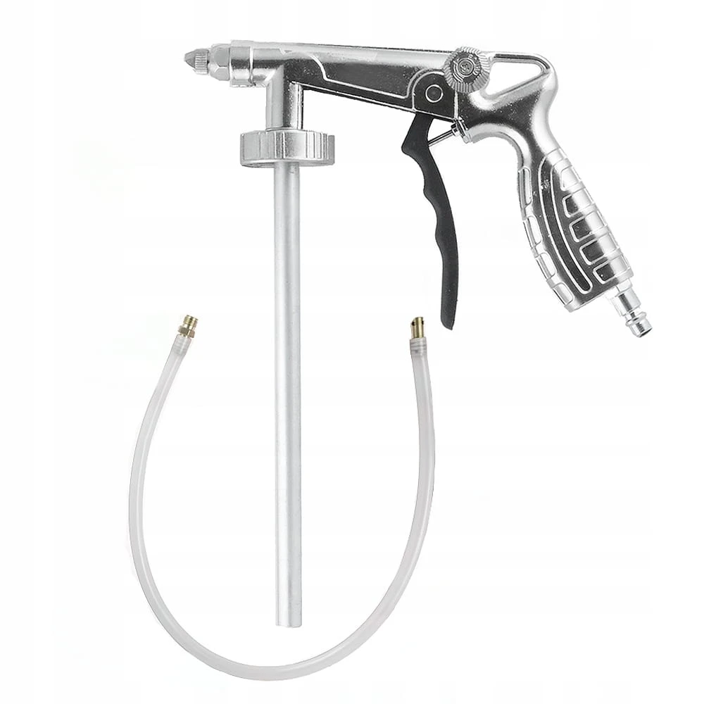 Pistolet natryskowy z regulowaną dyszą, umożliwiający nakładanie środków do konserwacji karoserii samochodowych w puszkach 1-litrowych z gwintem.